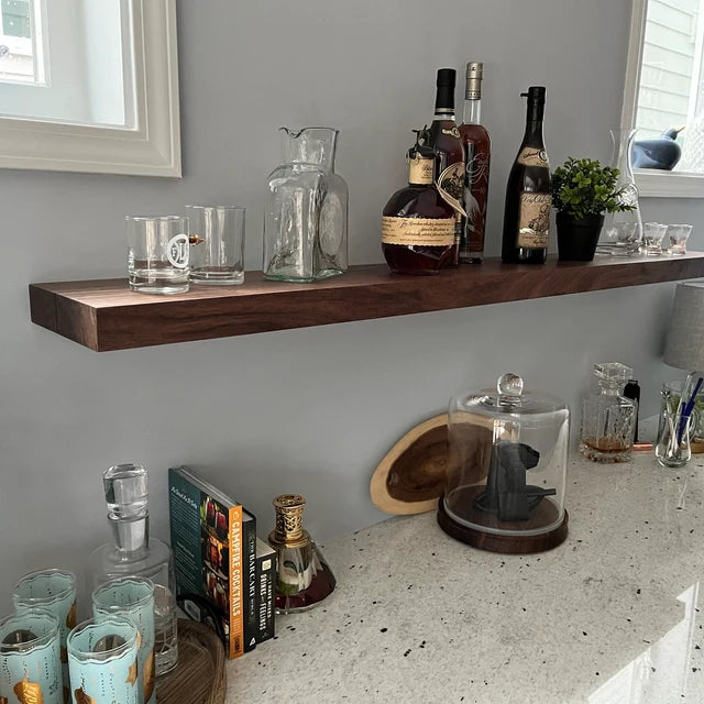 Depth in rustic applications often leans toward the more substantial end. A 10" or 12" deep walnut shelf has visual weight that suits the aesthetic, while a 6" shelf reads as more minimal and contemporary. Match the depth to what the shelf is doing: deeper for kitchen storage and books, shallower for purely decorative display.