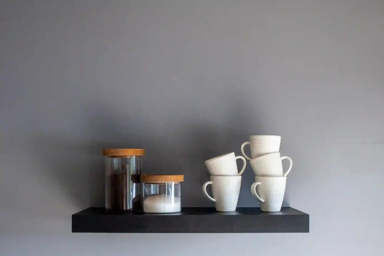 We recommend placing two shelves butted up against each other in the corner. It creates a clean, seamless ‘L’ shape while keeping the strength and style of our floating shelves.