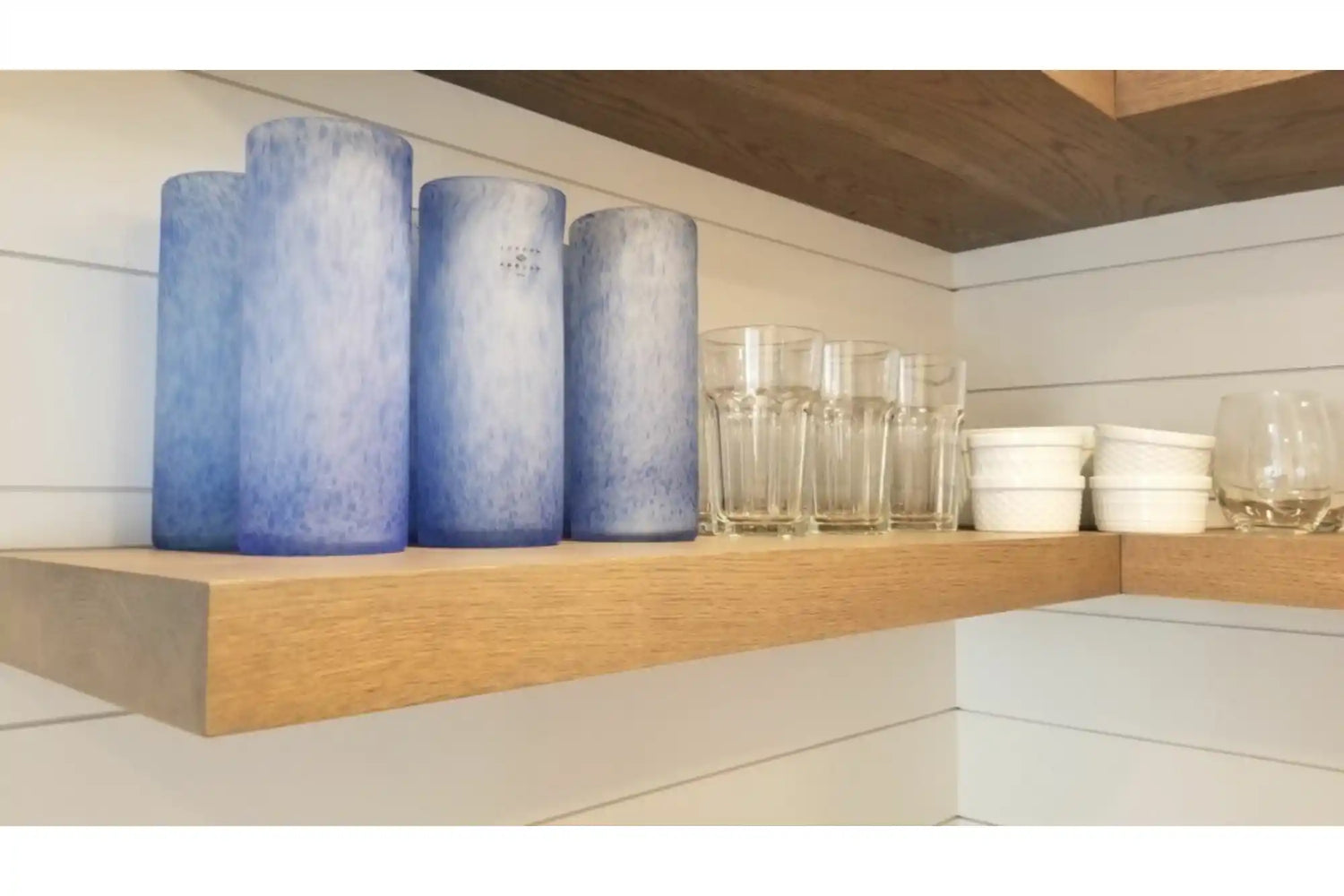 We recommend placing two shelves butted up against each other in the corner. It creates a clean, seamless ‘L’ shape while keeping the strength and style of our floating shelves.