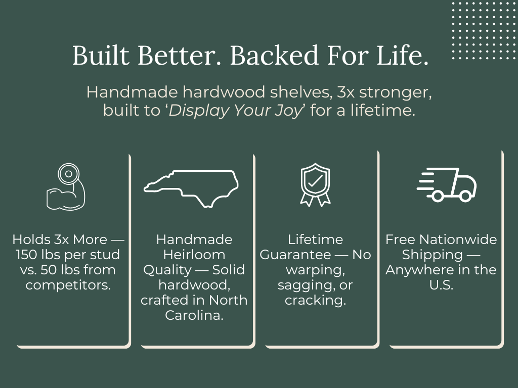 Because the things you choose to display tell your story — and with shelves built to last, you can proudly Display Your Joy every day.